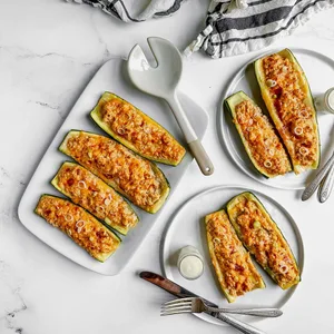 If you regularly crave Buffalo wings, you'll love these Buffalo chicken zucchini boats. They're extra creamy, with ingredients like cream cheese, buffalo wing sauce, cheddar cheese and ranch dressing, so you'll get a mouthful of flavor in every bite.