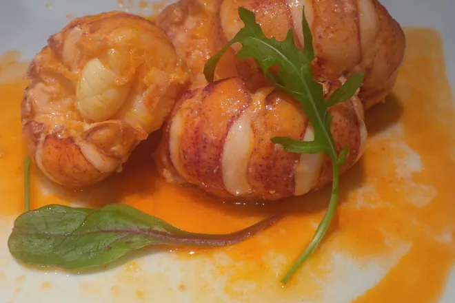 For something so relatively simple, there's a seemingly long ingredient list and some prep work. Get everything in place and it all comes together easily. I've always found that shrimp and salmon are a fantastic pair. Add cream and saffron to a shrimp broth and it's heavenly. And fennel. I love fennel. It adds such a great background taste of anise. Some shortcuts: instead of making a spice rub, use whatever commercial rub suits your fancy. Instead of making a shrimp broth and cream sauce, buy some ready made shrimp or lobster bisque. Don't leave out the sherry. And finally, please don't overcook the shrimp and salmon. The shrimp will continue to cook even after such a short hit on the heat. And I like to treat salmon almost like tuna, a bit rare in the middle.