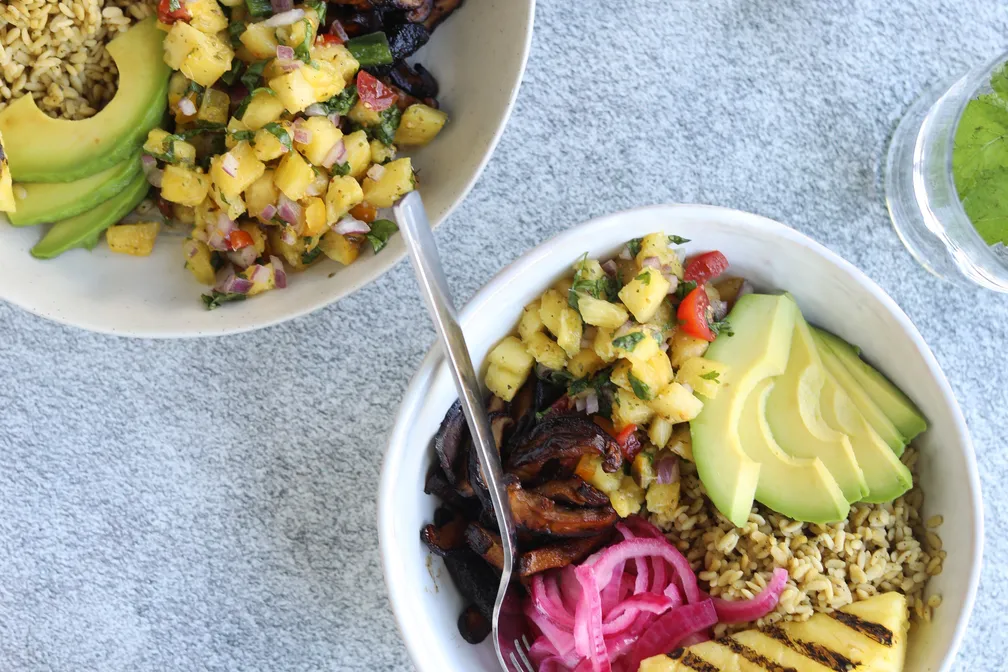 "Both of my parents are from the Caribbean, so I’ve grown up appreciating the magic that happens when sweet and savory ingredients come together. The combination of smoky mushrooms, sweet pineapple salsa, coconut undertones, and supporting acidic and savory pops of flavor is what makes this bowl so divine. And don’t you dare skip out on the cilantro aioli—it is cooling, creamy, and simply the real deal."