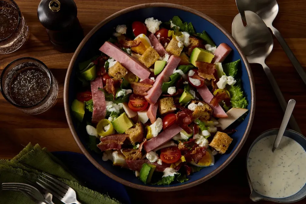 When the house chef takes the night off, resist your go-to takeout and toss together this powerhouse one-bowl dinner instead. Yes, it’s a salad, but it stars bacon, salami, ham, turkey and cheese, which makes it an easy sell to the under-15 crowd, as well as a fun and filling meal.