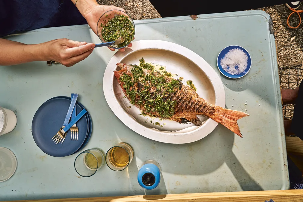 This little green sauce that goes with every grilled or roasted protein in your repertoire. I like to add this to tuna salad, vegetable-based soups, and brothy beans, and spoon it over fried or hard-boiled eggs, too. You could also use it as the dressing for a grain salad or put it out with roasted, boiled, or steamed potatoes (any type, including sweet potatoes).