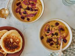 Gazpacho is endlessly adaptable, with as many variations as there are tomatoes. This is my personal favorite, particularly in late summer. Stone fruit complements the tomatoes' sweetness, and a cheesy flatbread makes it complete. Think grilled cheese and tomato soup, but for warm days. Feel free to adjust the ingredients to your liking; it's hard to go wrong. Just taste as you go, balancing the salt and acidity. You'll find yourself making these flatbreads all the time, too!