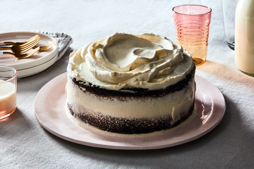 This chocolate cake recipe has been "the" chocolate cake in our family for decades, for two big reasons. First, it is the best-tasting chocolate cake in my family's (considerable) baking repertoire, moist and deeply chocolatey without being heavy. Second, sheer ease. This cake has exactly two steps: mix all the ingredients together in a bowl, and bake. I've cheated on my mom's recipe by adding instant espresso powder—a baking trick that heightens the flavor of chocolate—but feel free to leave it out. Classic chocolate frosting works well if you want to gild that chocolate lily, but we prefer to frost this cake with homemade, lightly-sweetened whipped cream.