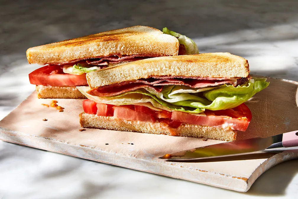 Taylor ham aka pork roll is a New Jersey treasure. Salty, savory, and porky, sort of like Spam meets Genoa salami. You’ll most often find it crisped on a griddle in a diner, then tucked in a kaiser roll with a fried egg and American cheese. But this ingredient wants to be used anywhere you’d normally think of actual-ham or bacon or sausage. The possibilities are endless—try it in fried rice, hodgepodge pasta, or your next BLT. Yes, yes, it’s no longer a BLT without the B. But I have a hunch that this version (THLT? PRLT?) will swiftly become your new go-to come summer each year. If you live in or near New Jersey, you don’t need me to tell you where to find Taylor ham—just about any supermarket should be amply stocked. If you aren’t in the northeast, check your nearest supermarket anyway (I could find it when I lived in North Carolina). Or order it online. Like a classic BLT, this is only worth it with in-season, water-balloon-esque tomatoes. But feel free to go rogue with the bread options: A potato bun, kaiser roll, or English muffin would all work wonders here.